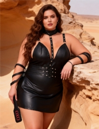 Standard Product Name: Black, faux leather, spliced with multiple rivets, metal rings, neck ring connected to the belt, 9-shaped buckle design, detachable, bracelet spliced with snap hooks, detachable, adjustable shoulder strap, paired with thong, M-5XL, fashionable bondage leather skirt