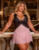 Home > Wholesale Plus Size Lingerie > V Neck Pink Lace Stitching Strap with Flower Babydoll