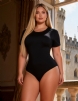 Home > Plus Size Teddy Supplier > Black Simple Short Sleeves Open Crotch Bodysuit