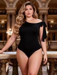 Home > Plus Size Teddy Supplier > Black Sexy Bow Tie Sleeveless Off-shoulder Open Crotch Bodysuit