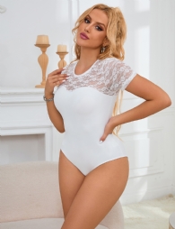 Product Name White Sexy Swim Cloth Lace Short Sleeves Open Crotch Bodysuit