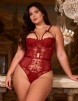 Home > Plus Size Teddy Supplier > Wine Red One-piece Sleeveless Underwired Floral Patterns Mesh Bodysuit