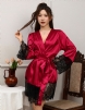 Product Name Red Elegant Sleepwear Silk Eyelash Lace Long Sleeves Nightdress With G String