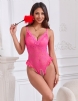 Home > Wholesale Sexy Teddy > Rose Red Sexy See Through Lace Ruffled Open Crotch Mesh Bodysuit