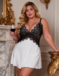 Home > Plus Size Pajamas Supplier > V-neck Black And White Lace-Trimmed Sexy Nightdress