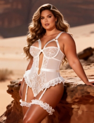 Home > Plus Size Teddy Supplier > White Sexy Slim Lace Garter Leg Ring Teddy