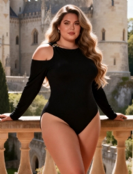 Home > Plus Size Teddy Supplier > Black Sexy Round Neck Off-Shoulder Long Sleeve Form-Fitting Open-Crotch Bodysuit
