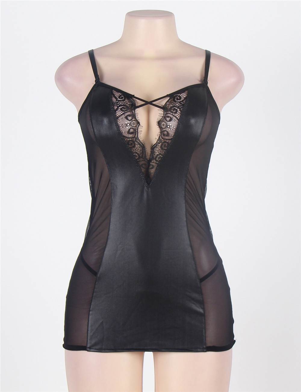 Home > Babydoll & Chemise > Black Leather Chemise With Lace Eyelash