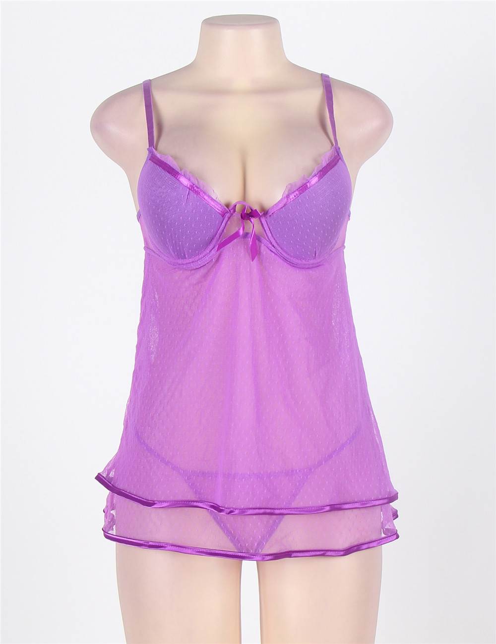 Product Name Sexy Bright Purple Sheer Mesh Babydoll