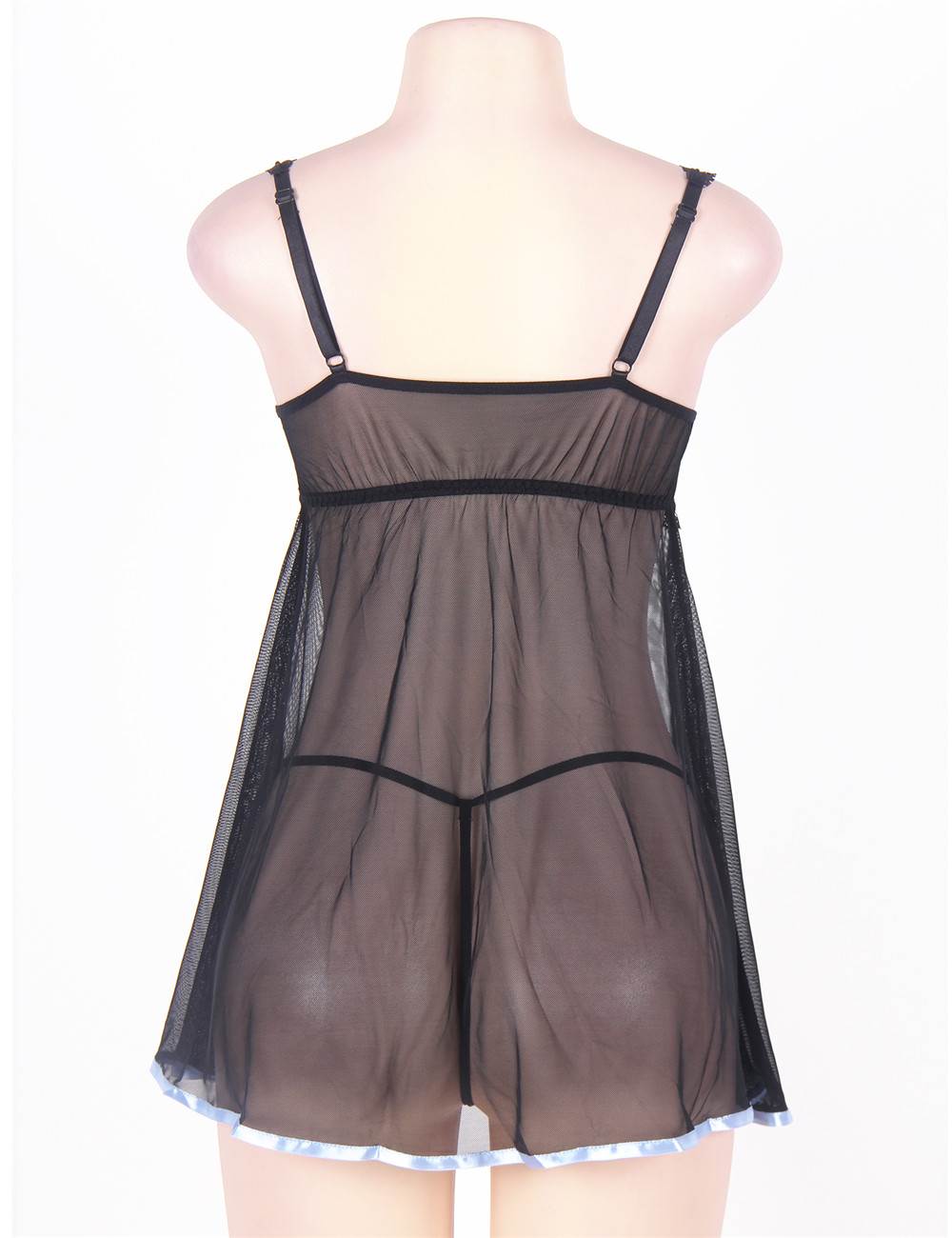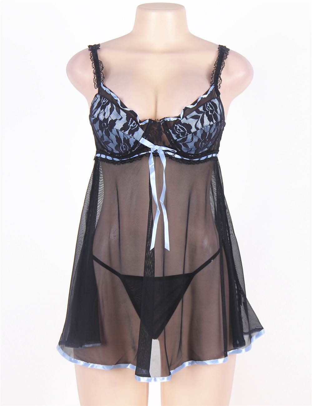 Home > Babydoll & Chemise > Mesh Cup Black Lace Babydoll Nightie Lingerie Set