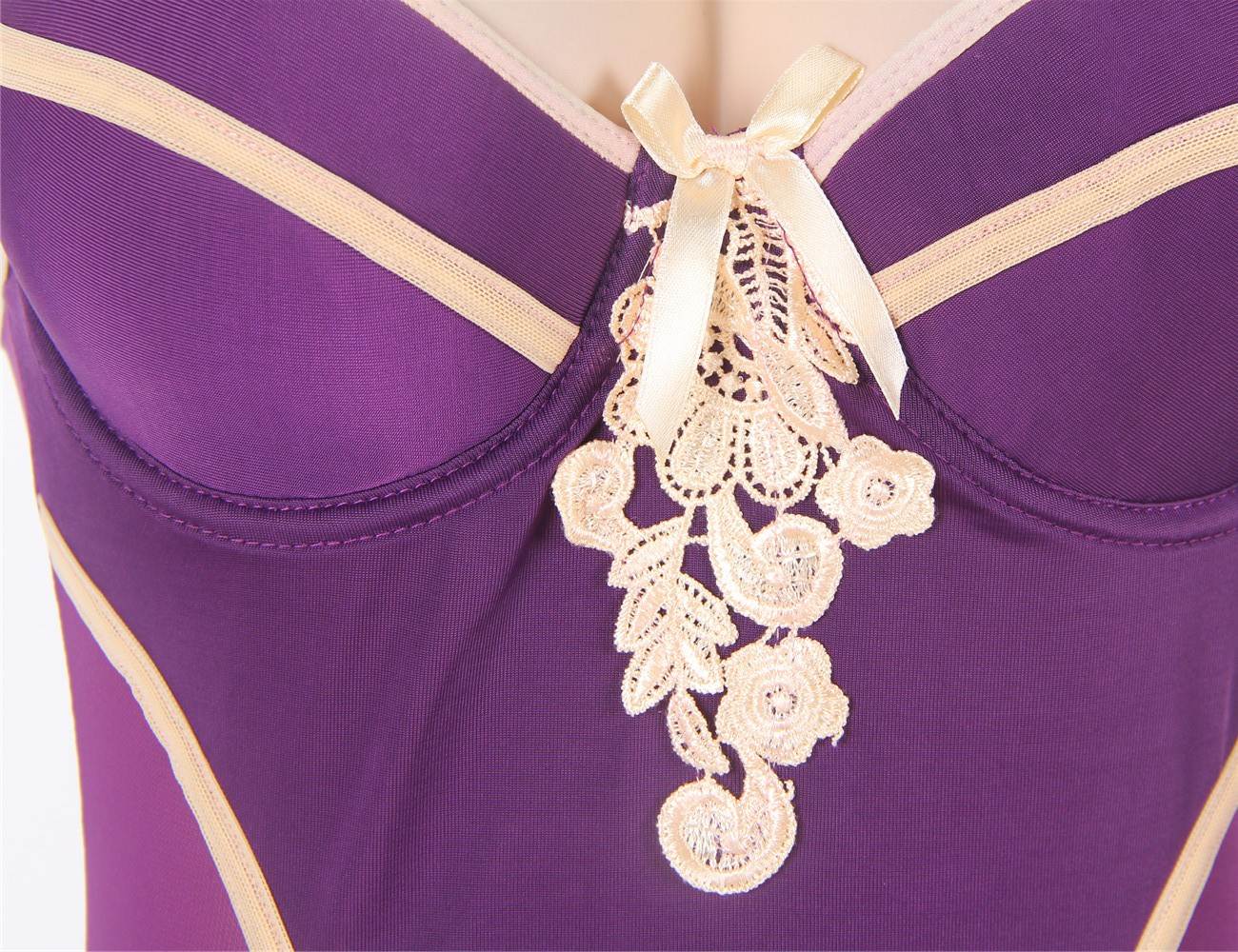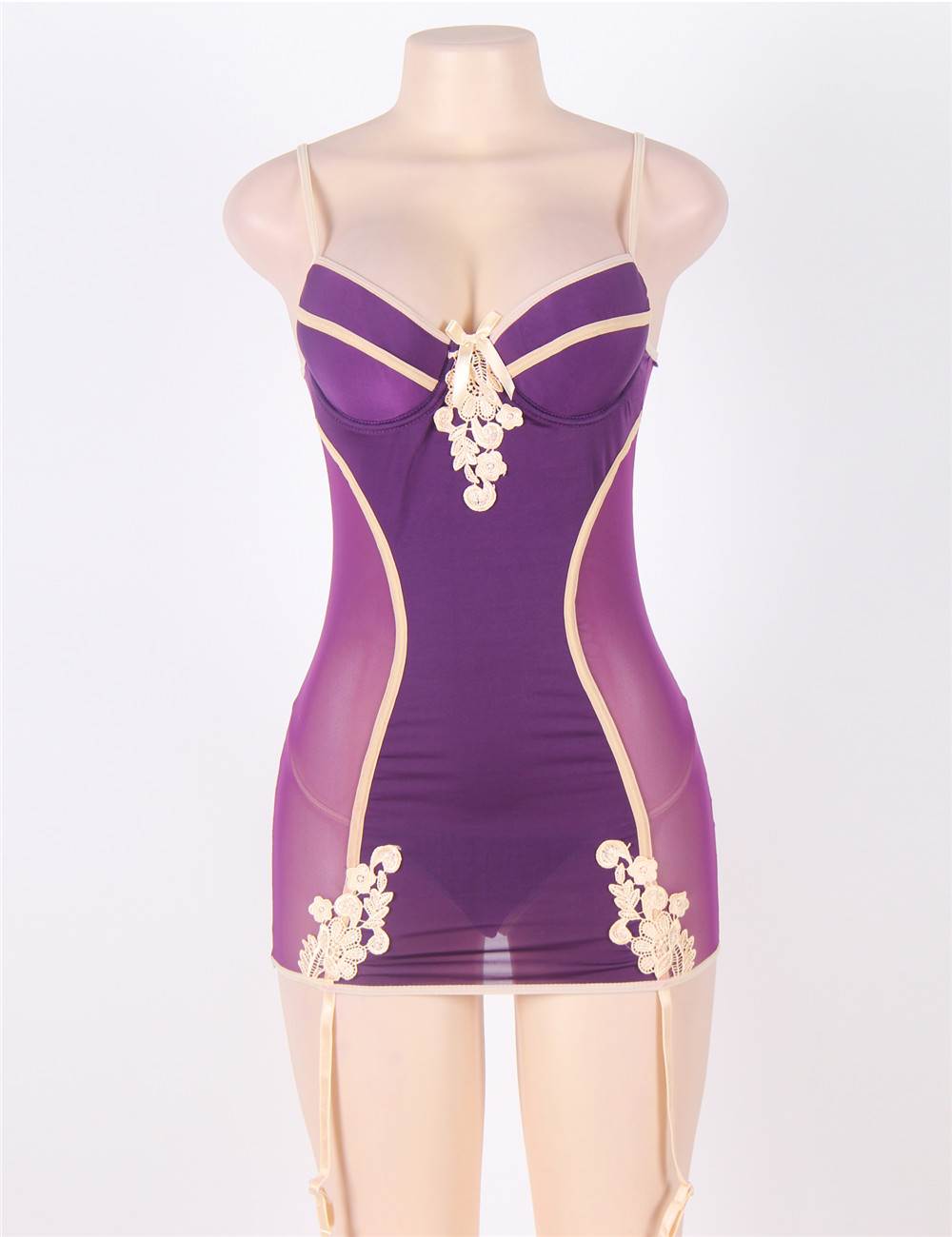 Home > Plus Size Lingerie > Purple Plus Size Chemise With White Embroidered Flower