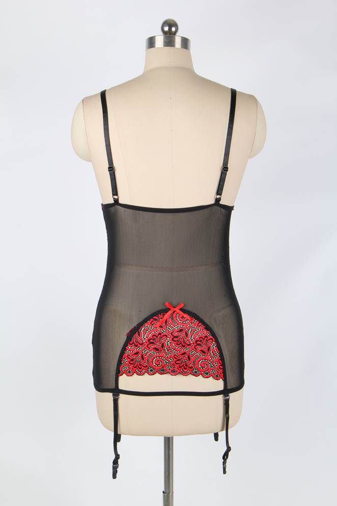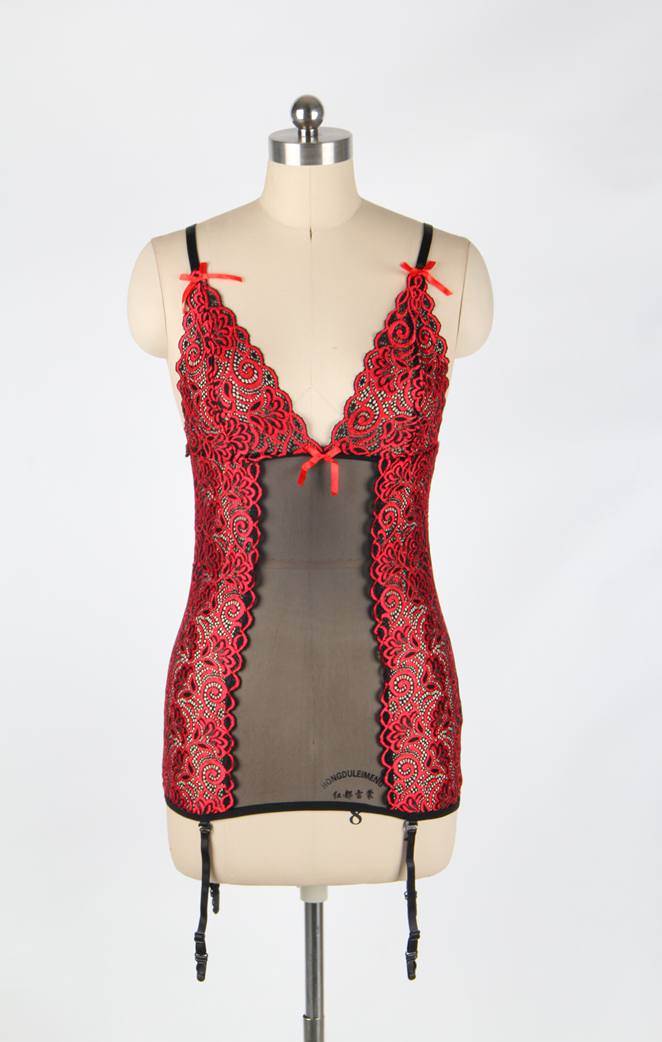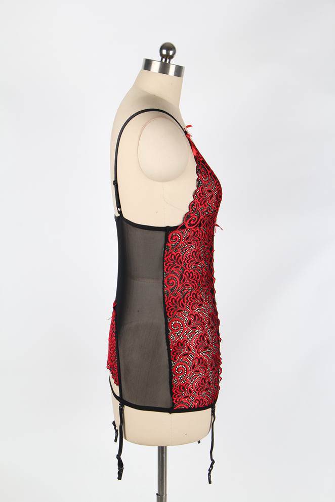 Home > One Size Babydoll > Red Rose Lace and Mesh Garter Bobydoll