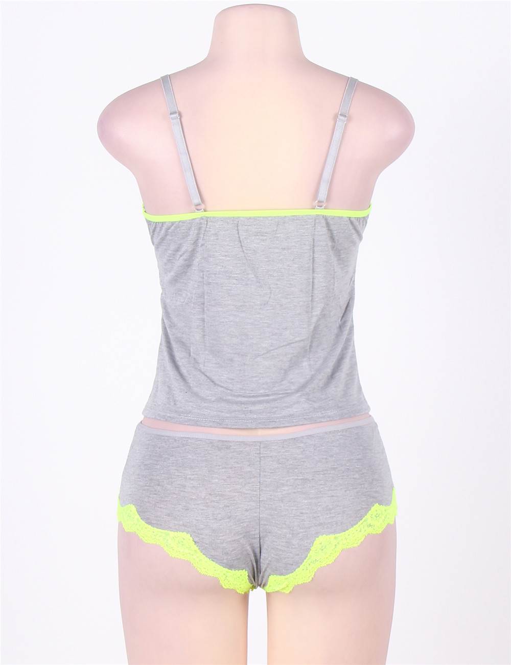 Product Name Grey Neon Yellow Lace Trim Cami And Boyshort Set