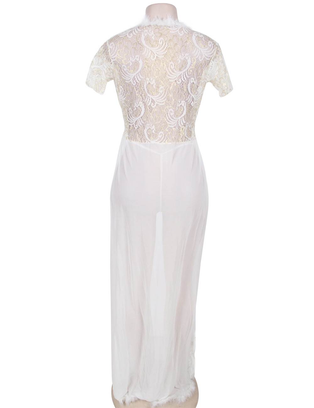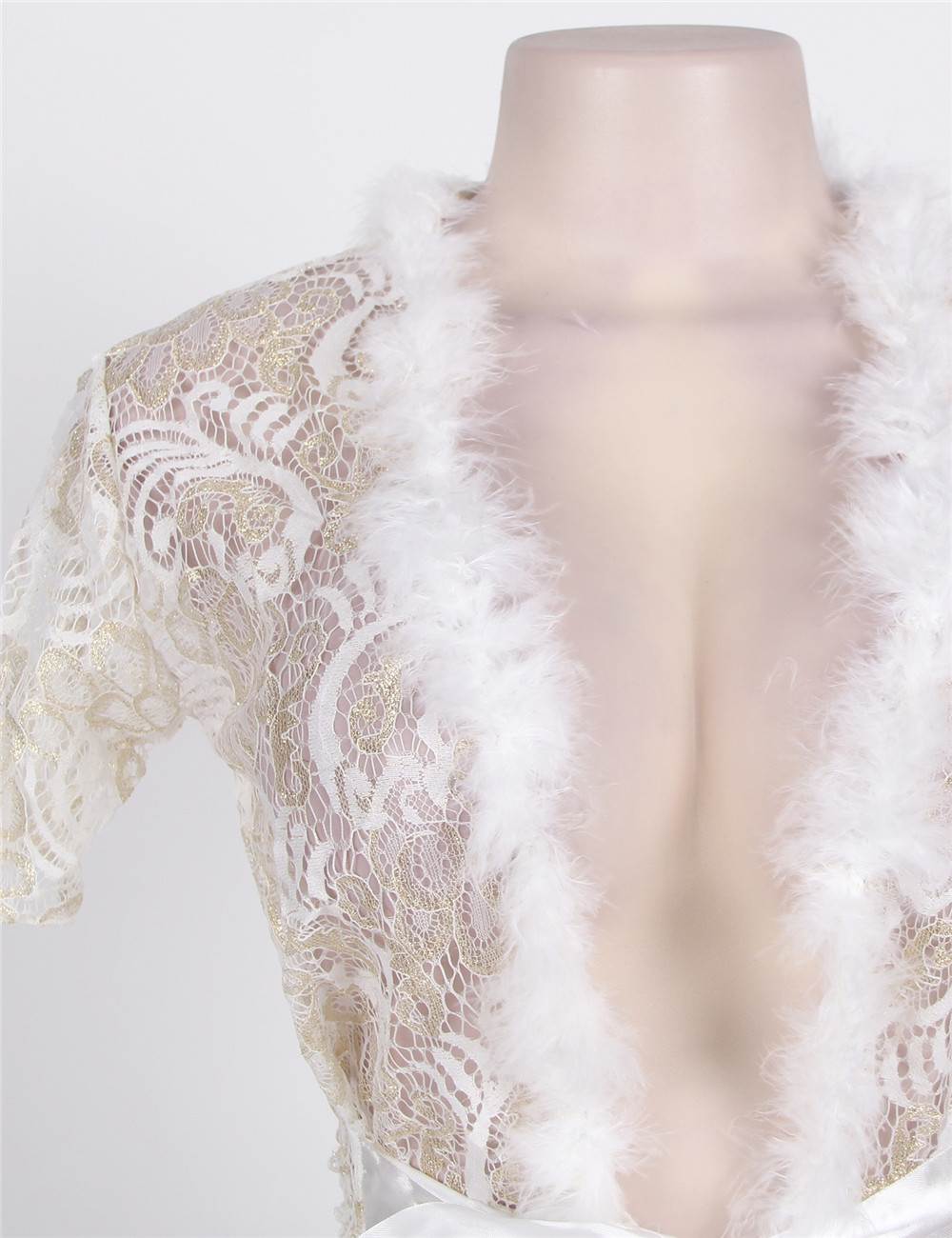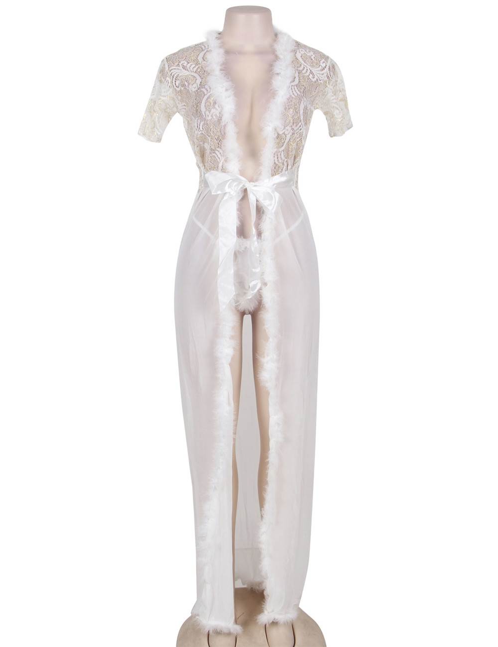 Home > Plus Size Lingerie > White Sheer Lace Kaftan Robe With Thong