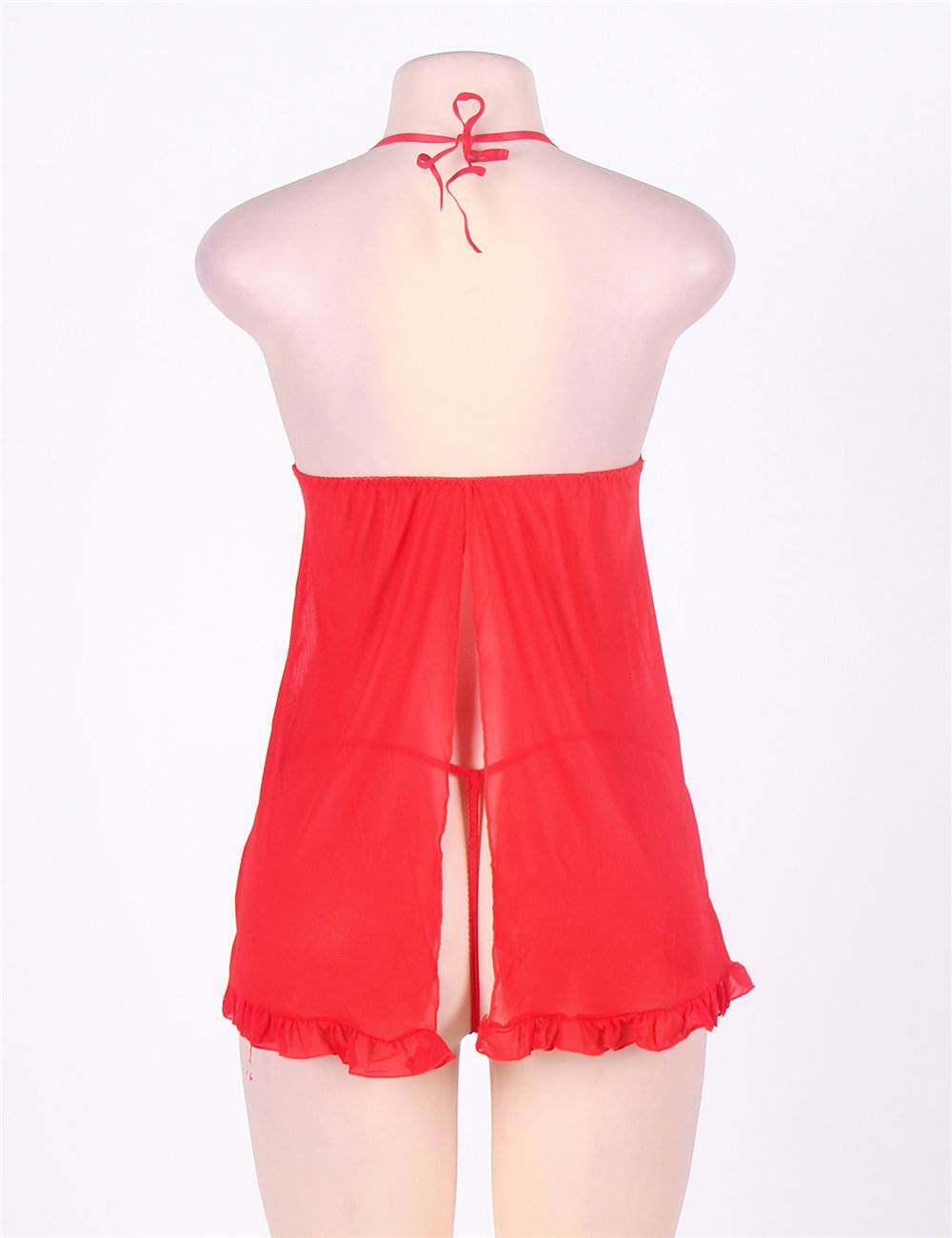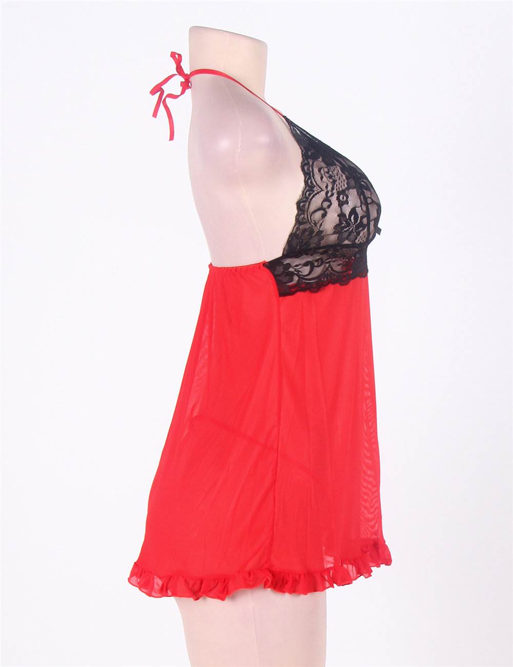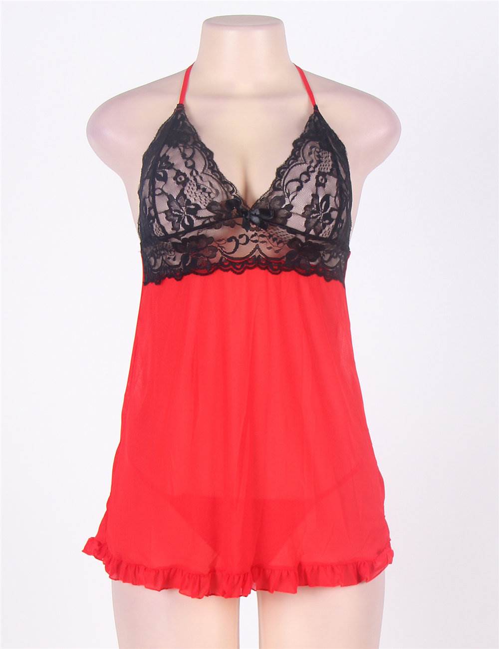 Home > Babydoll & Chemise > Sexy Black And Red Ruffled Lace Tops Lingerie Dress