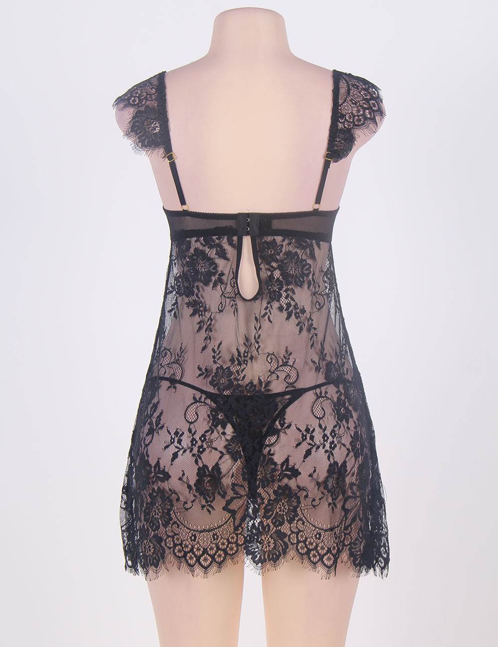 Product Name Black Sheer Floral Lace Babydoll Set
