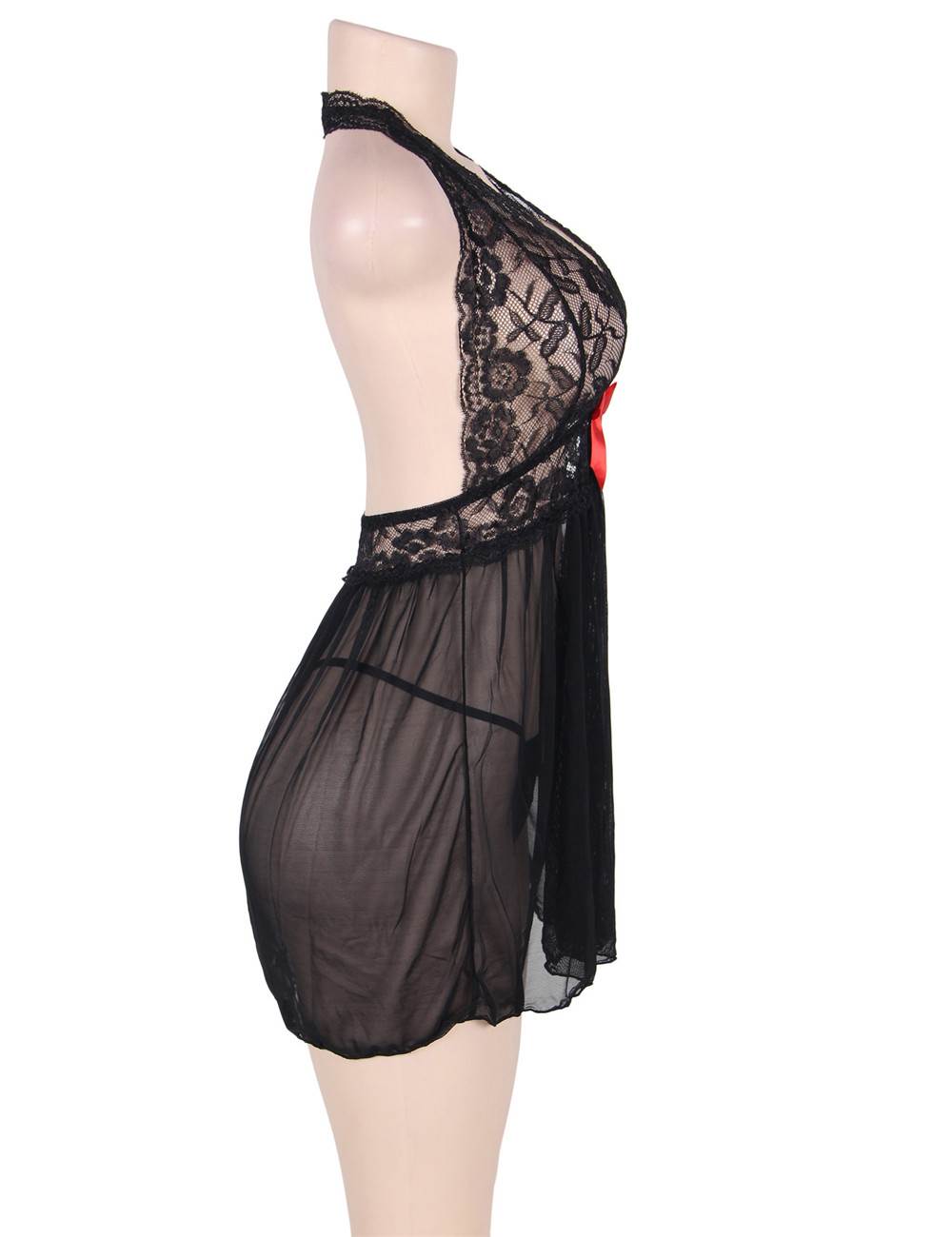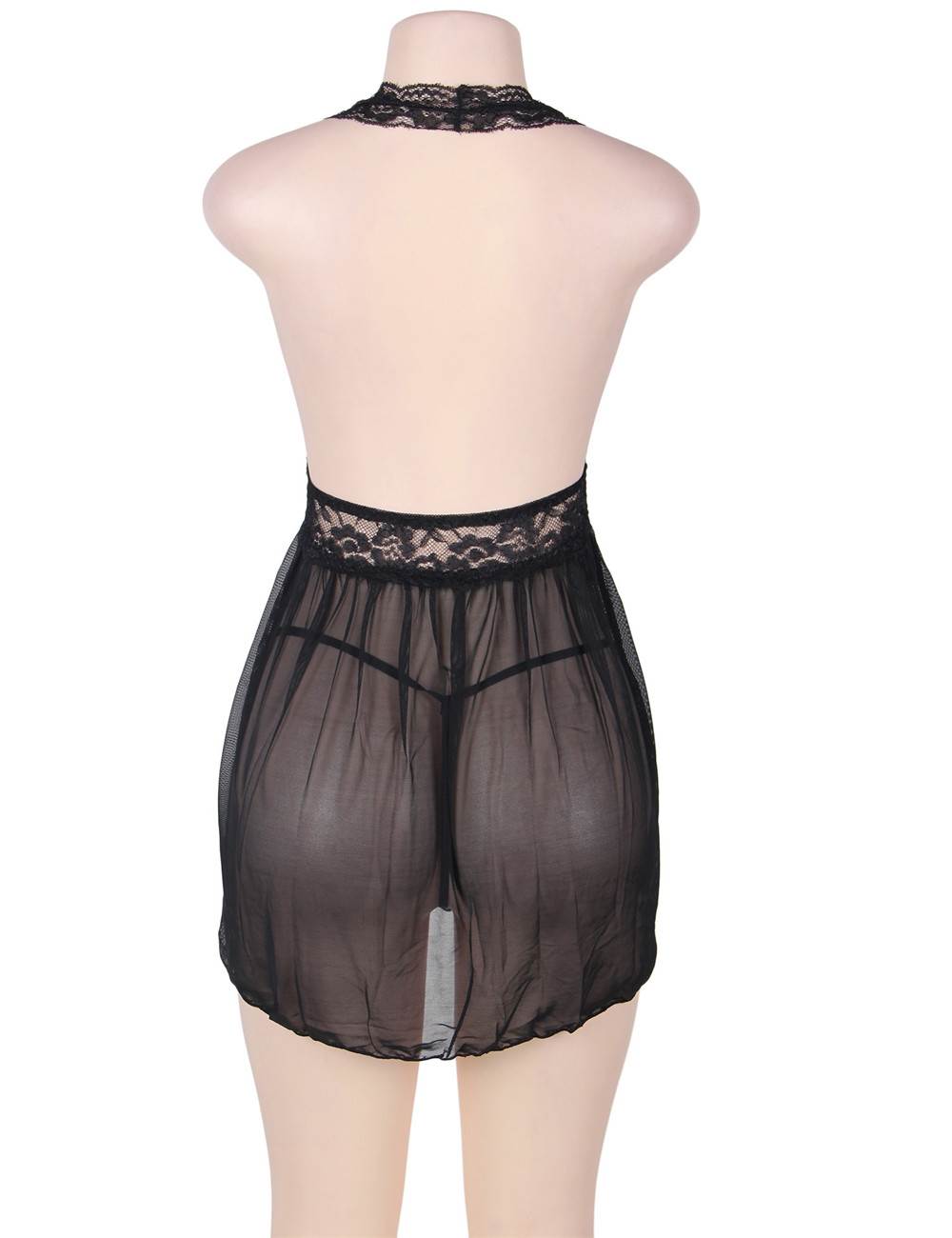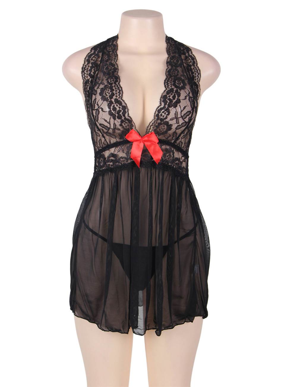 Home > Babydoll & Chemise > Black Sexy Halter Lace Top V Neck Babydoll Dress