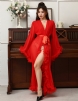 Product Name Red Sexy Mesh Ruffled Long Robe With Belt