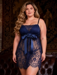 Home > Wholesale Plus Size Lingerie > Blue Eyelash Lace Sexy Push Up Suspenders Nightdress