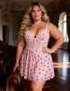Home > Wholesale Plus Size Lingerie > Pink Sexy Heart Printed Lace Mesh Push Up Nightdress