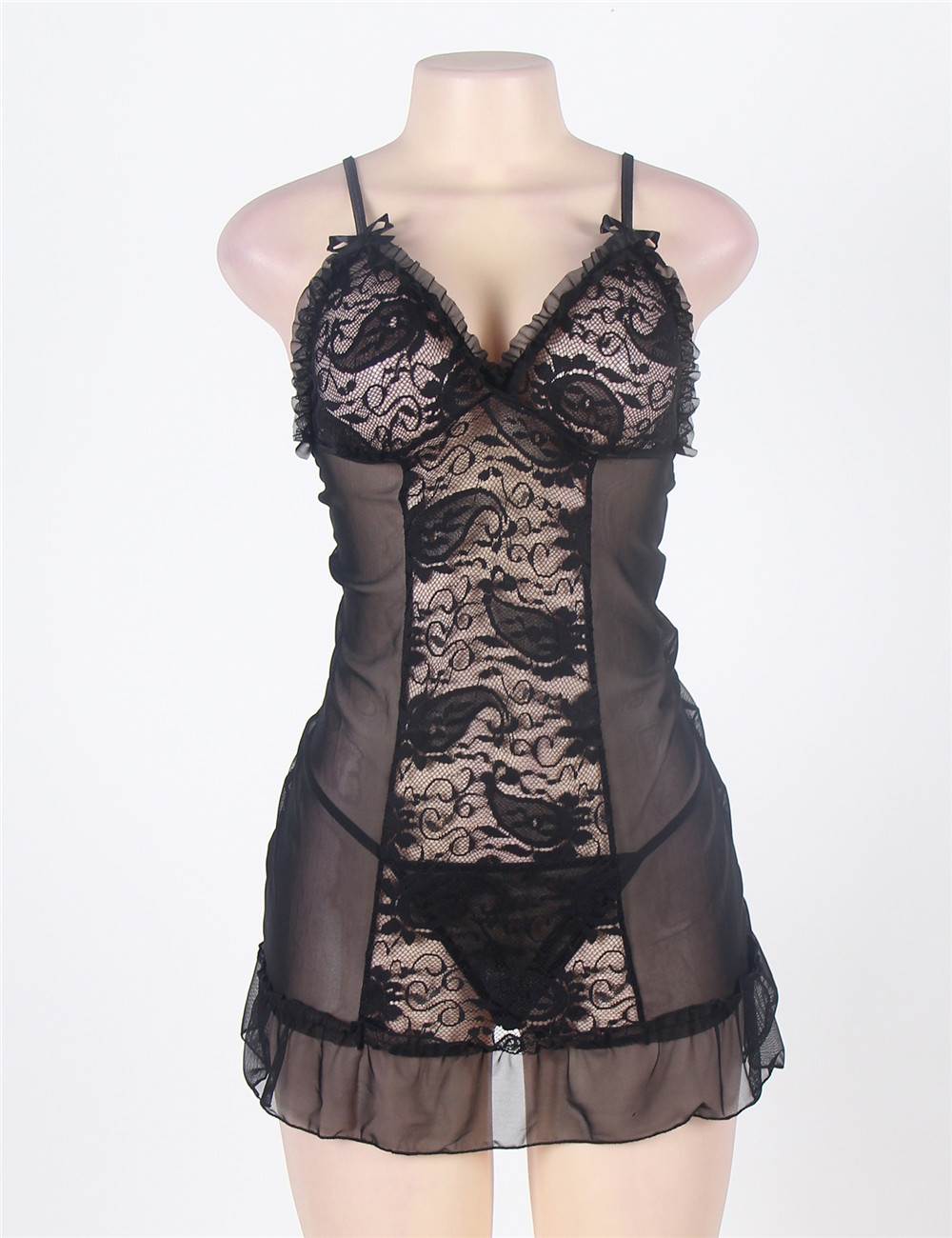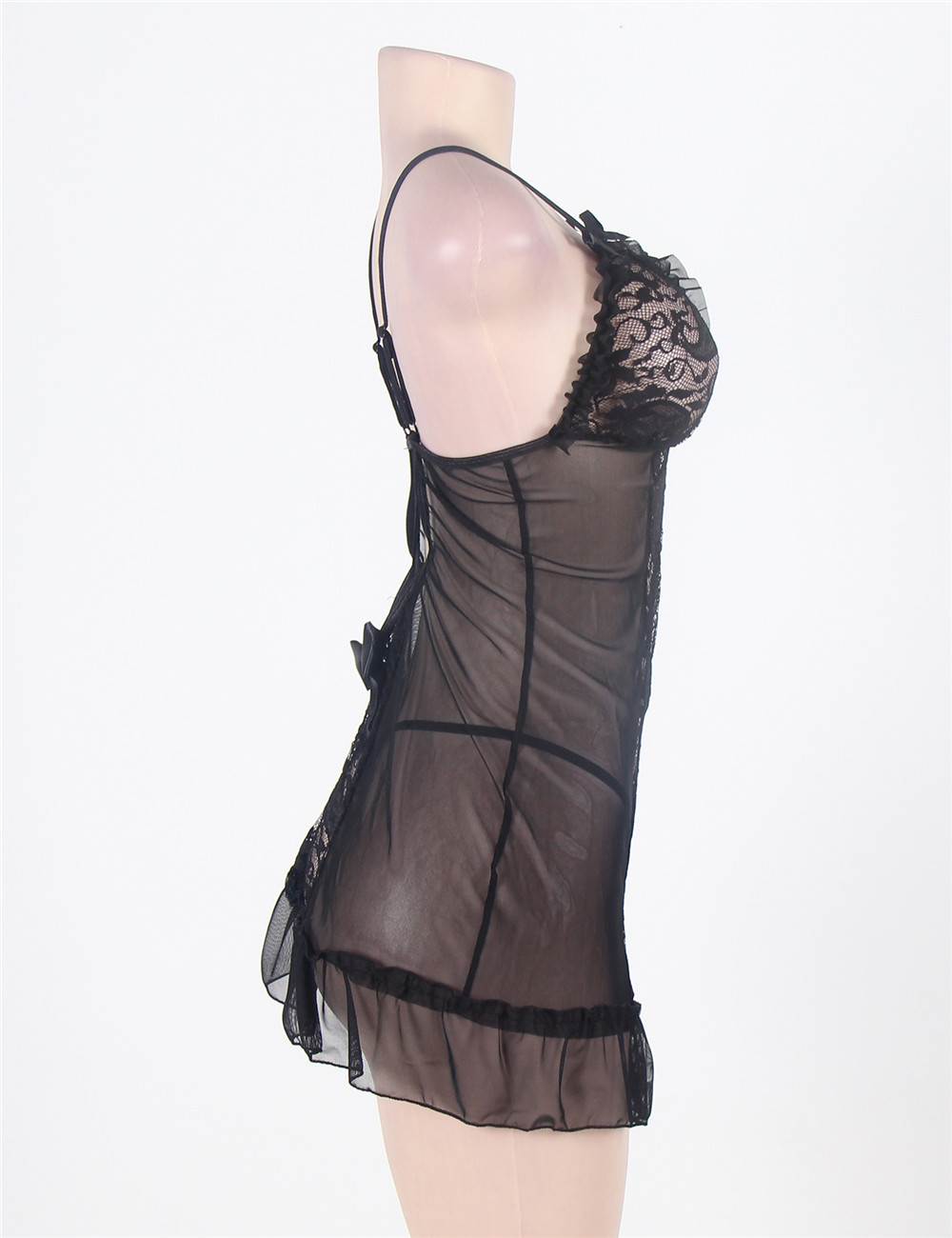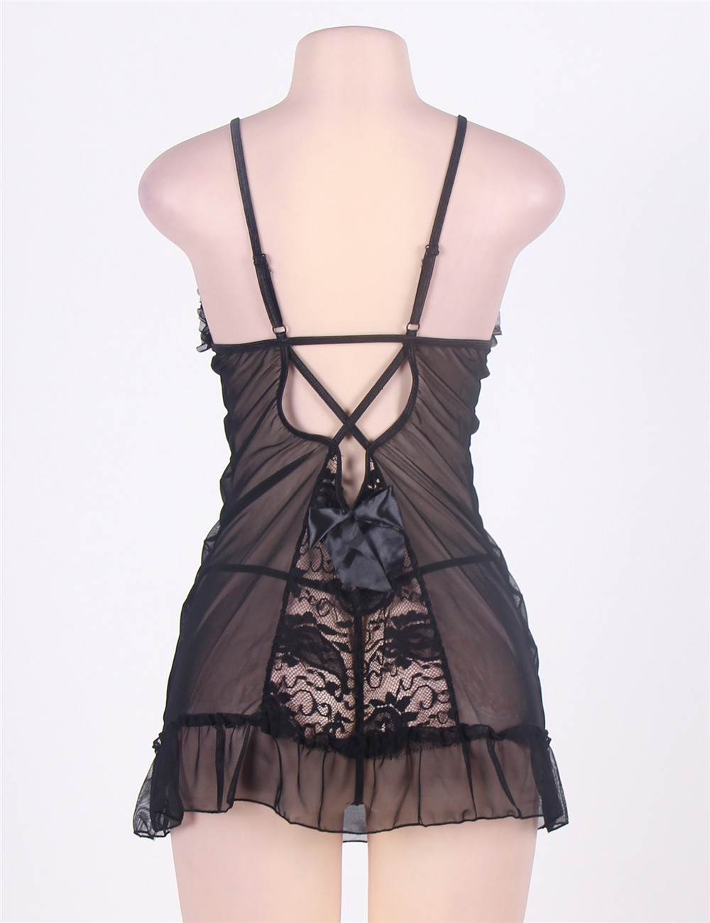 Home > Babydoll & Chemise > Black Sexy Mesh Scalloped Lace Babydoll