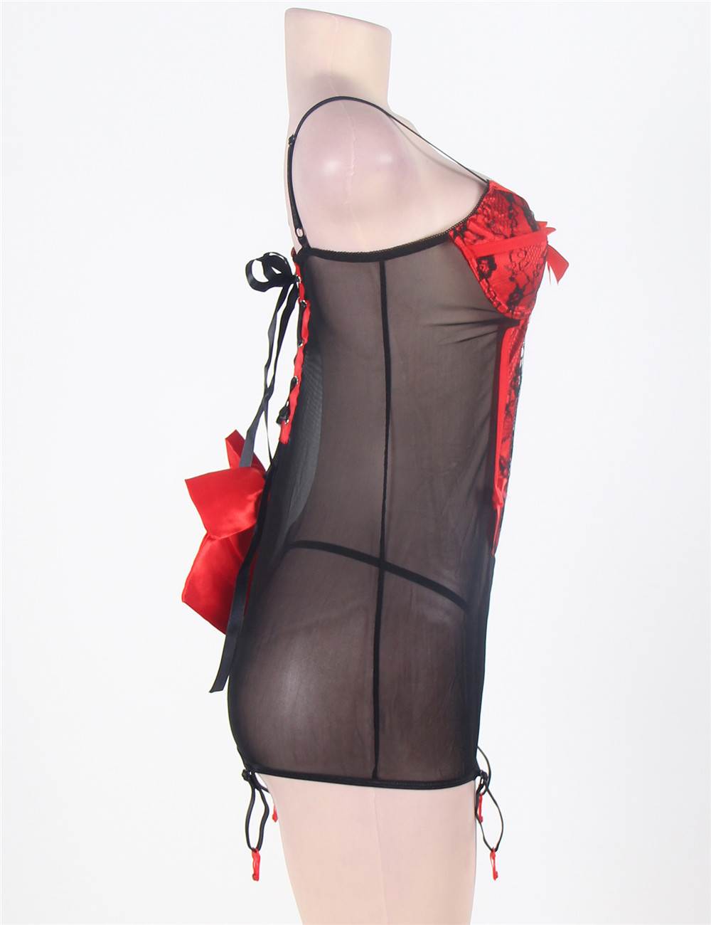 Home > Clearance Sale > Black And Red Satin Strap-Cross Back Sexy Lingerie Dress