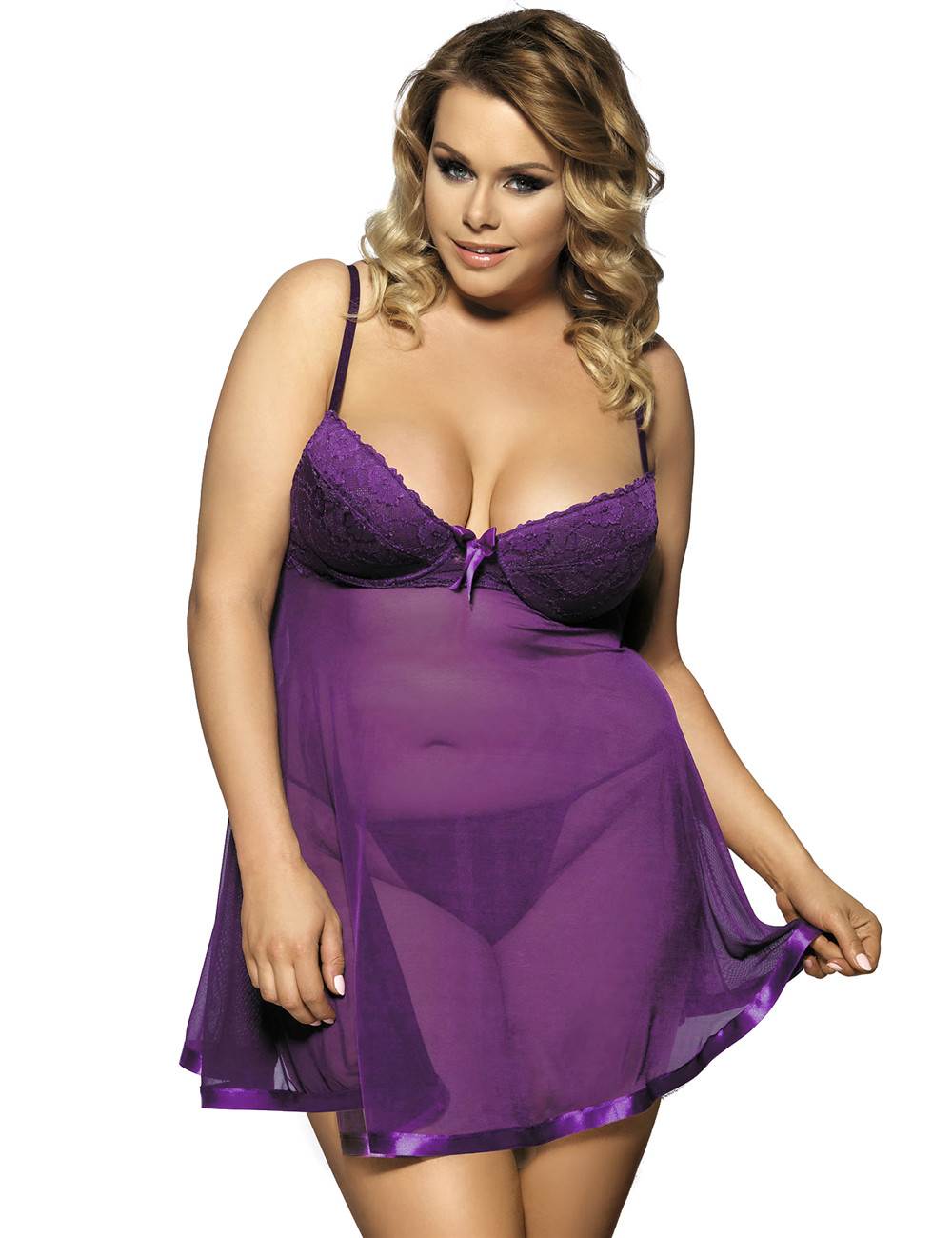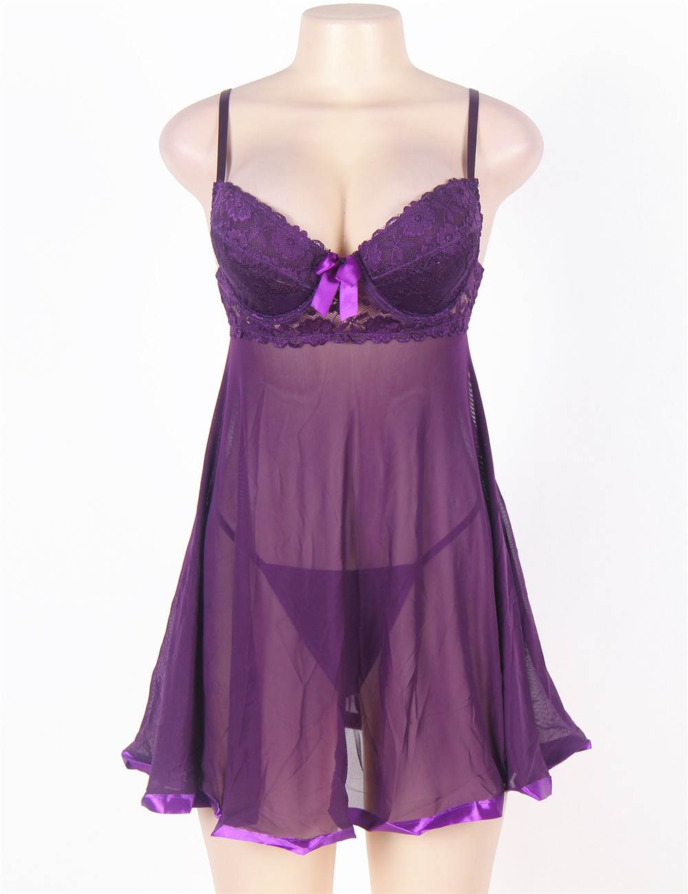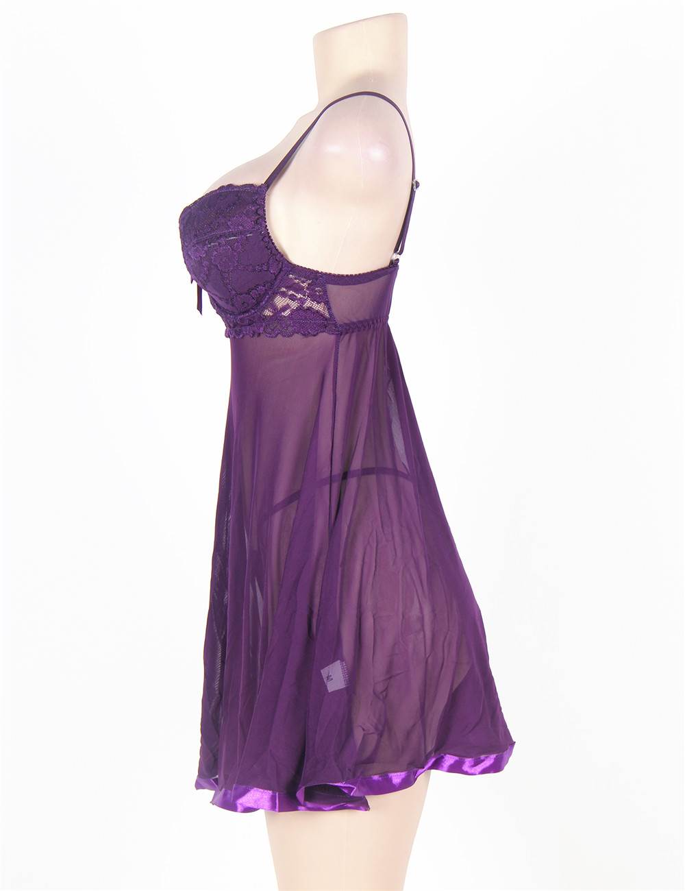 Home > Plus Size Lingerie > Purple Transparent Lace Top Plus Size Babydoll