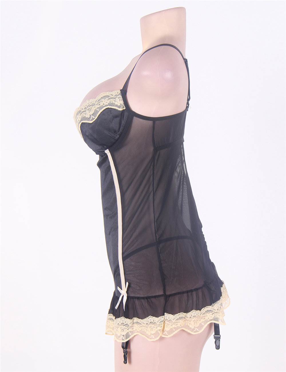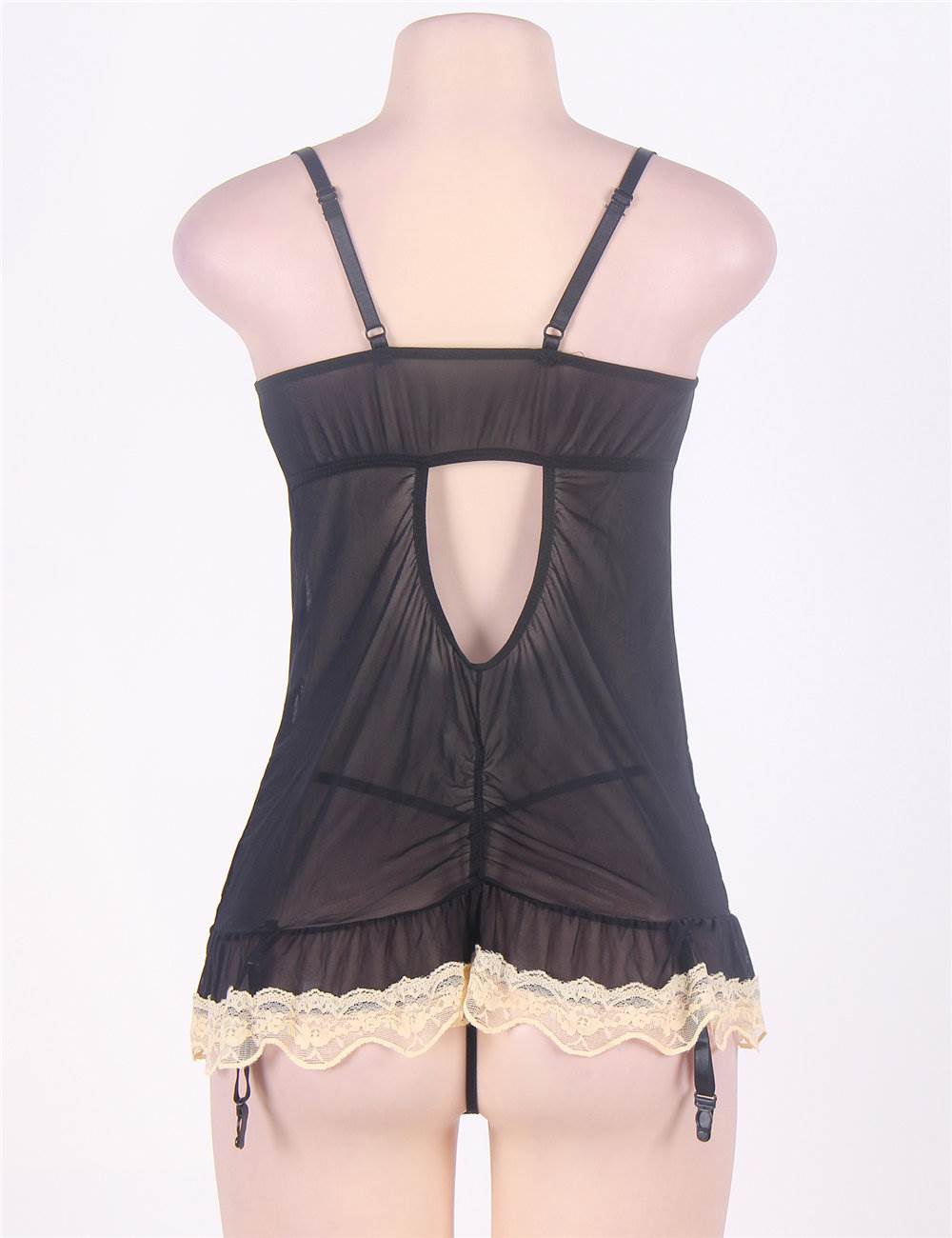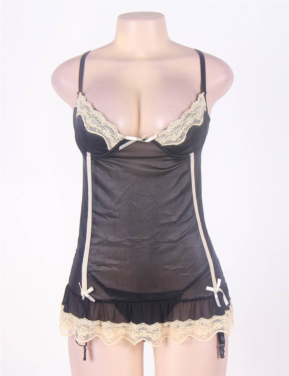 Home > Babydolls > Clearance Black Stretch Satin And Scallop Lace Chemise
