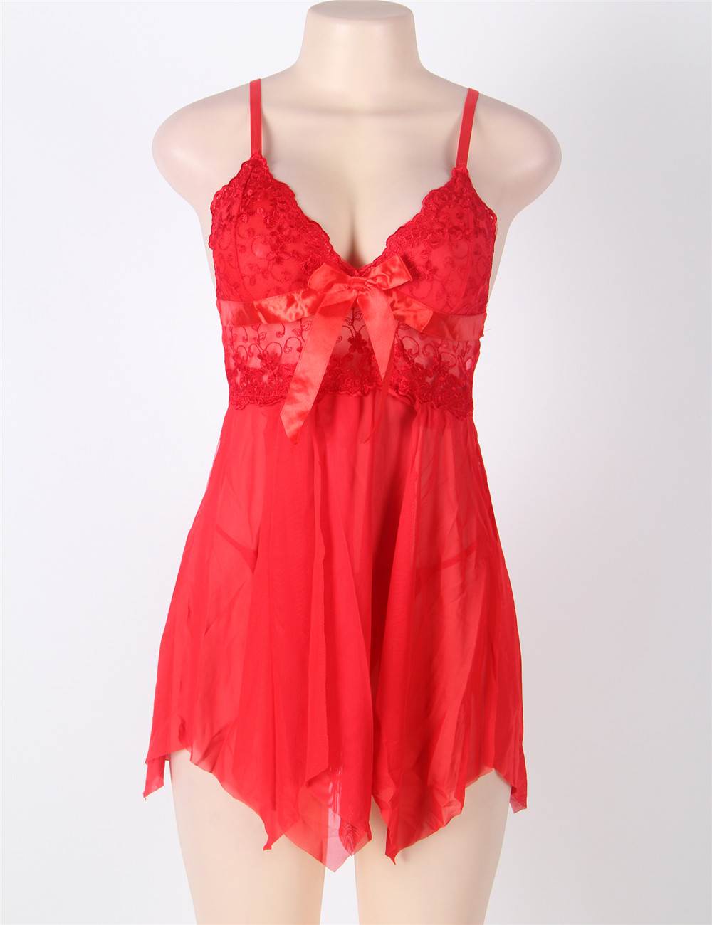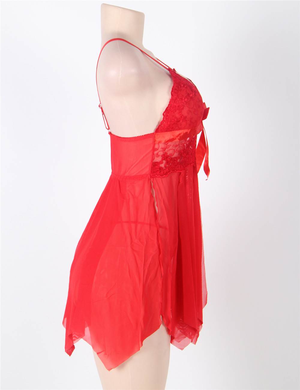 Home > Sexy Babydoll & Chemise > Red Sexy Draping Mesh and Lace Babydoll Set