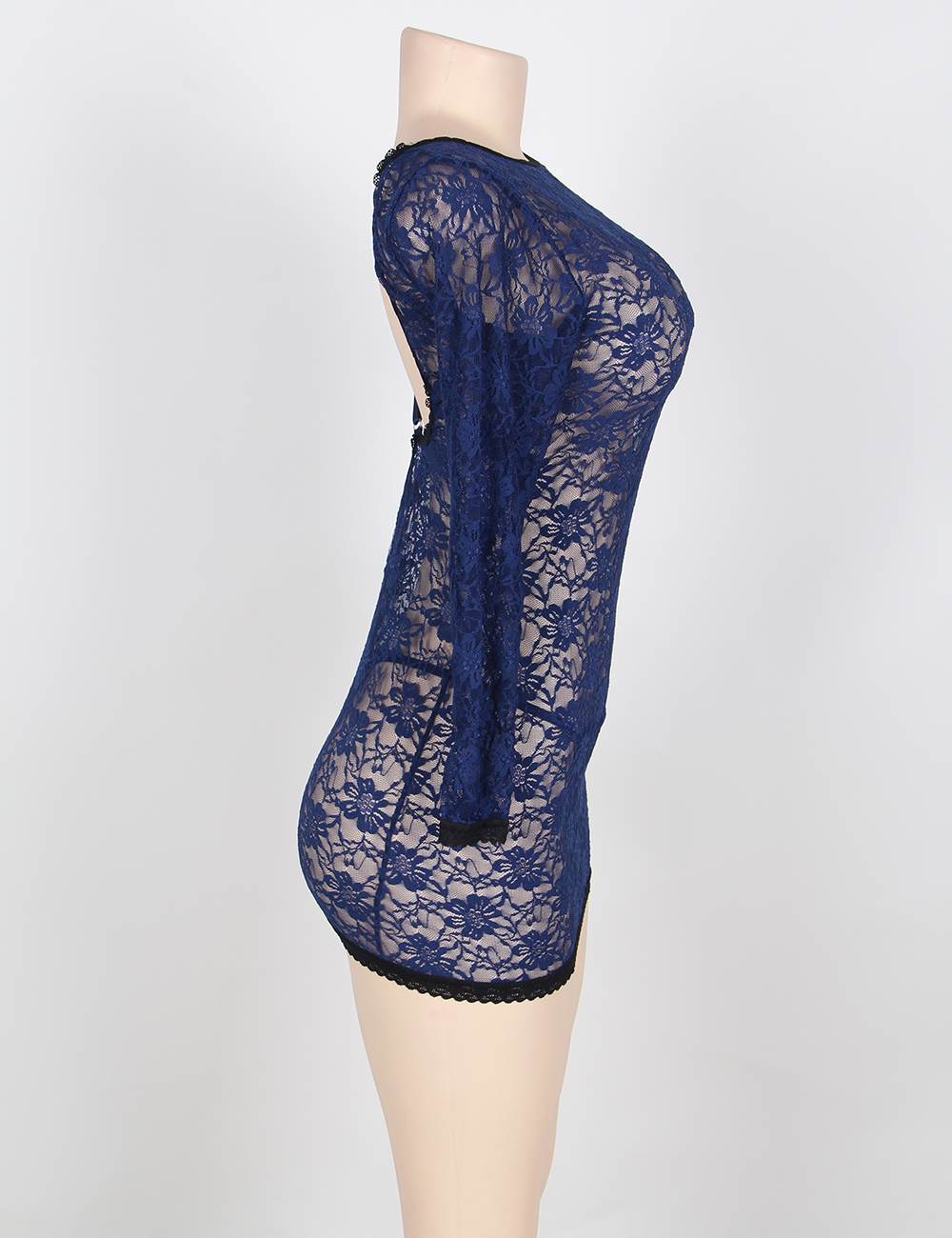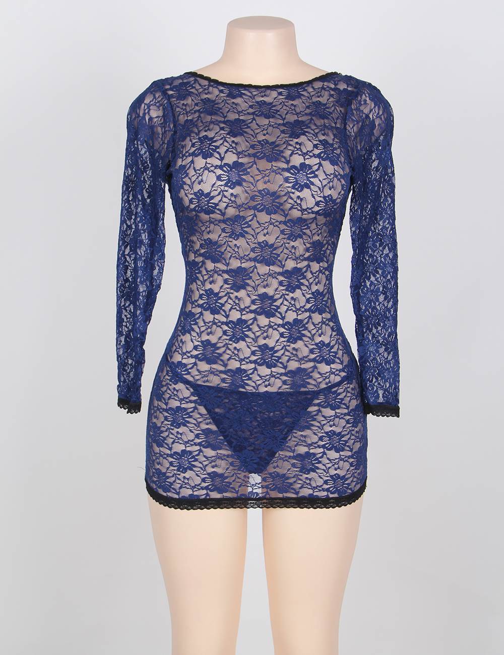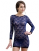 Home > Babydoll & Chemise > Blue Tunic Long Sleeve Croch Back Lace Mesh Babydoll