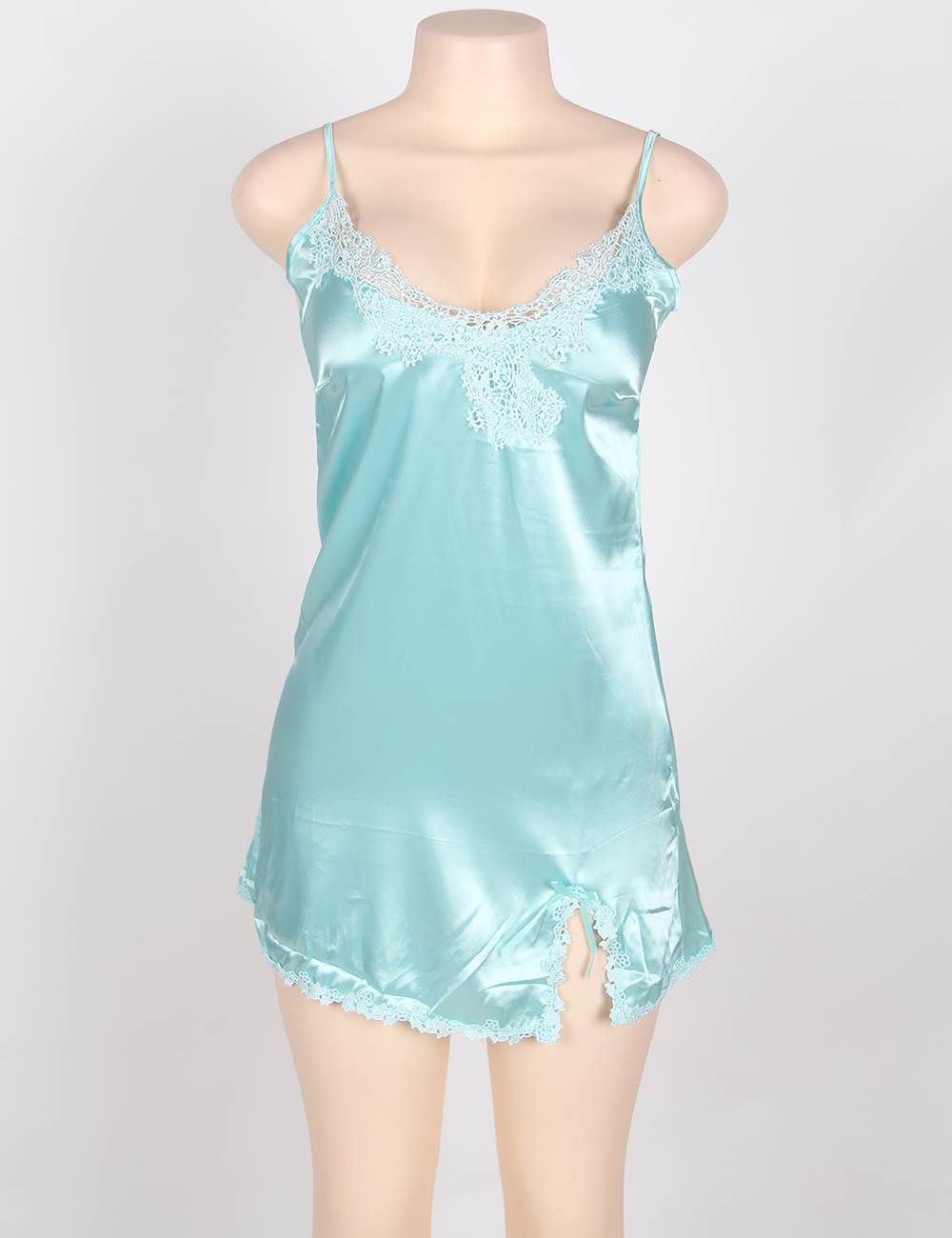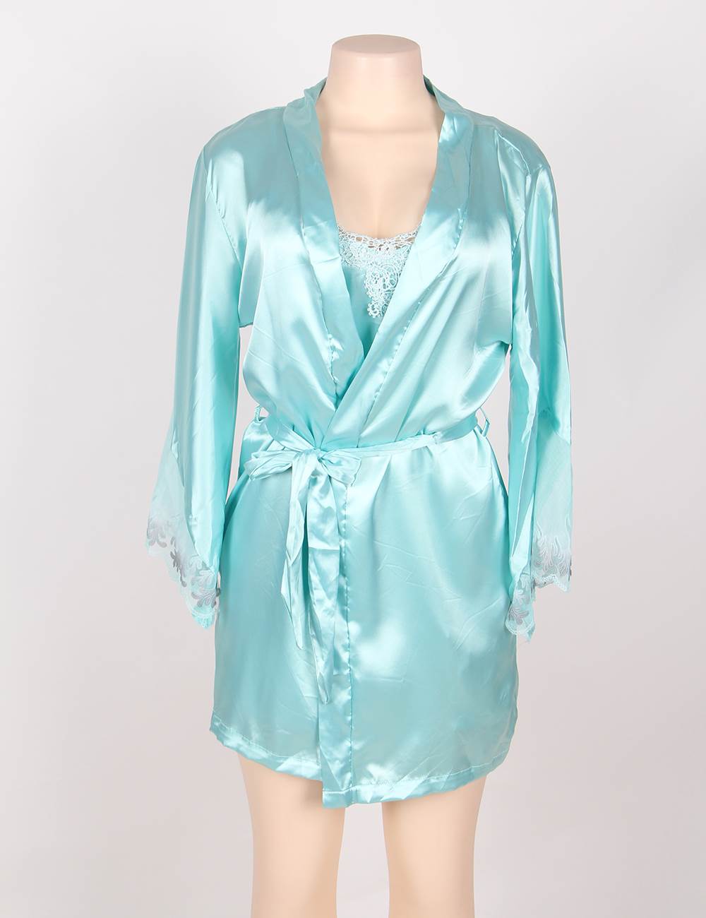 Home > One Size Babydoll > Two-Piece Satin Mint Green Sleepwear
