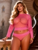 Home > Plus Size BodyStockings Wholesale > Green Long Sleeve Two-Piece Bodystocking With Fishnet Crop Top And Bottom
