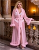 Product Name White Sexy Mesh Imitation Mink Fur Trim Long Robe With Belt