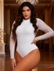 Home > Plus Size Teddy Supplier > White High Neck Mesh Minimalist Bodysuit