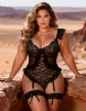 Home > Plus Size Teddy Supplier > Black Sexy Jacquard Lace Mesh Crotchless Bodysuit With Garter