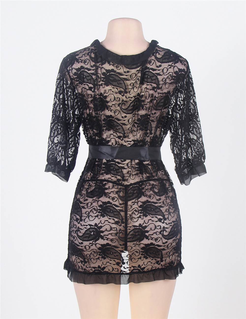 Home > Plus Size Lingerie > Black Half Long Sleeve Lace Plus Size Women Lingerie