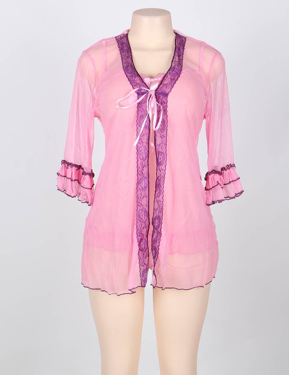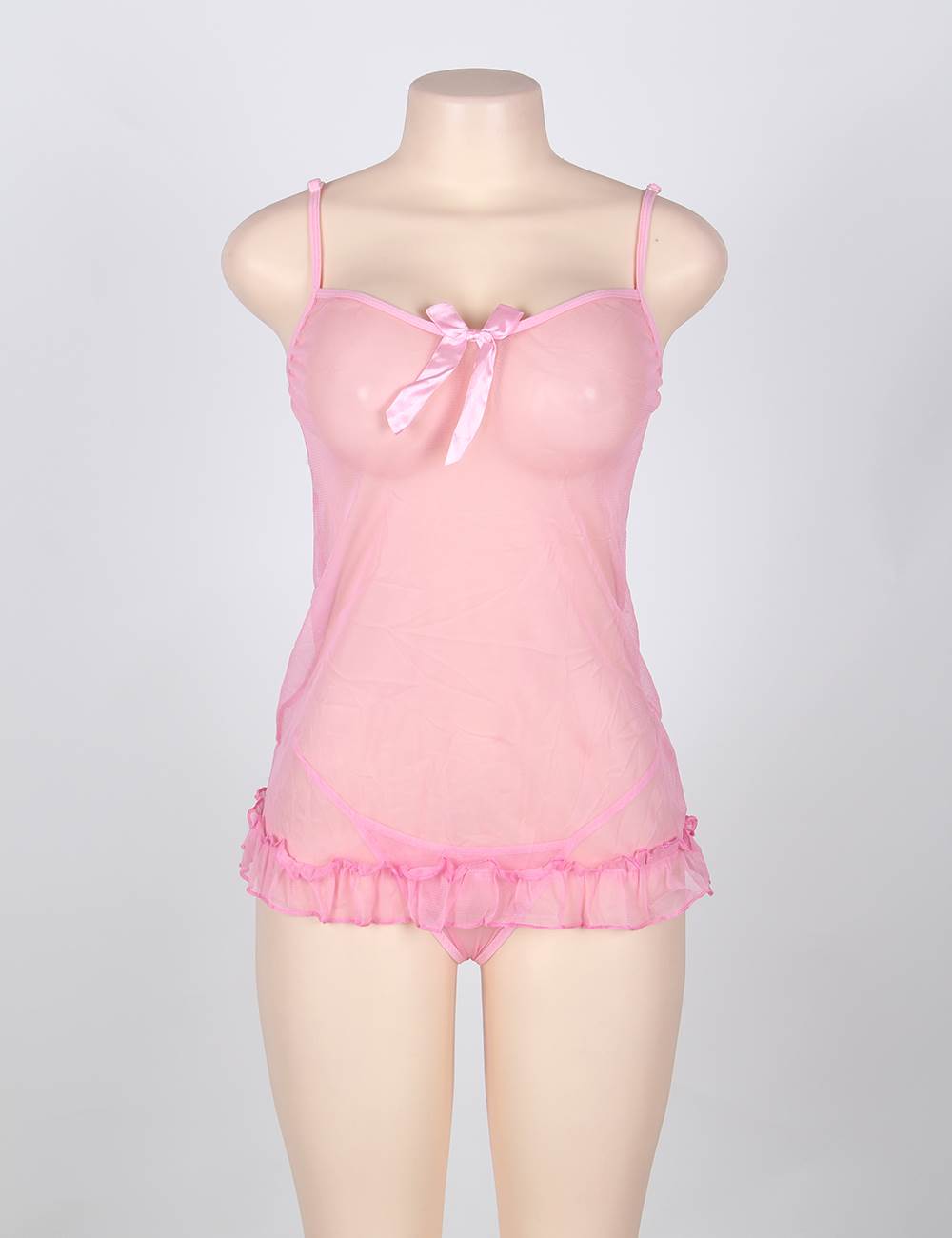 Home > Babydoll & Chemise > Pink 3 Pcs Ruffle Sexy Babydoll