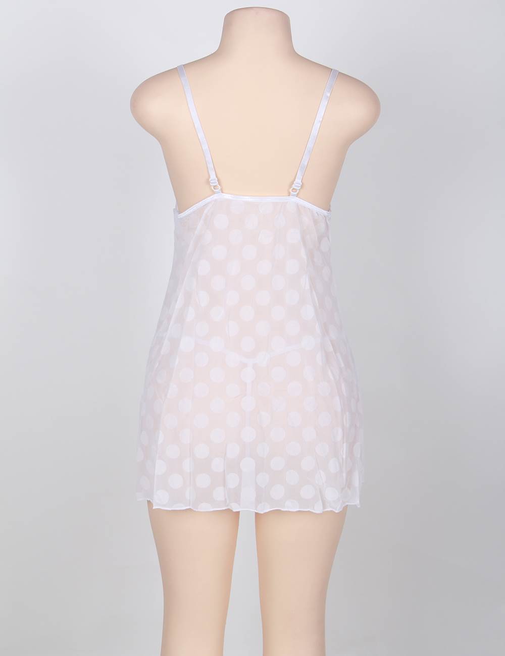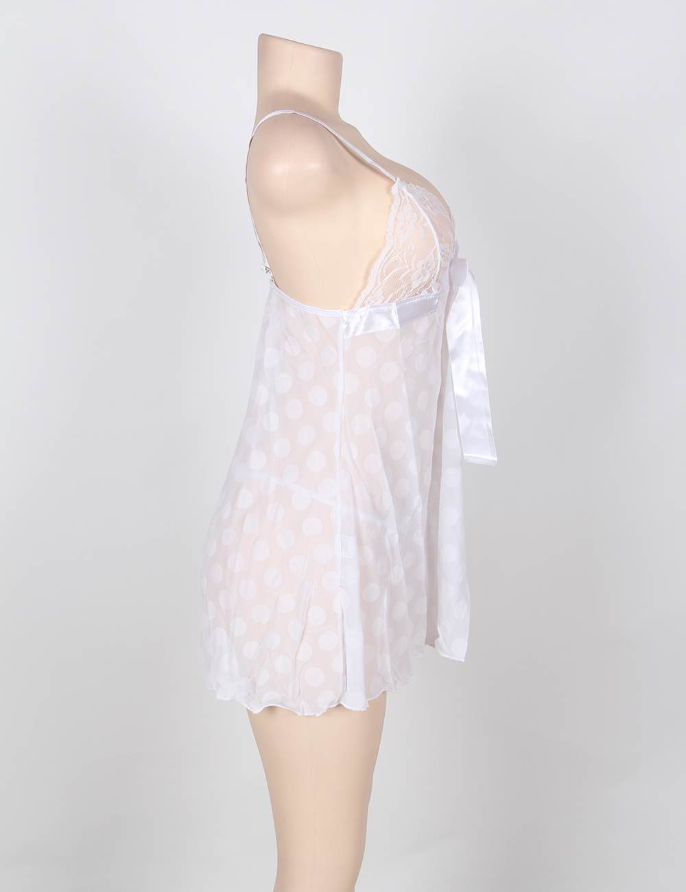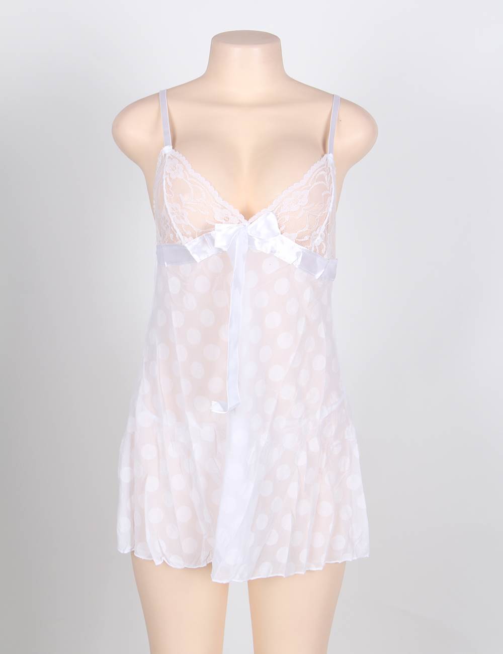 Home > Babydolls > Sexy White V Neck Lace Tops Round Dotted Babydoll