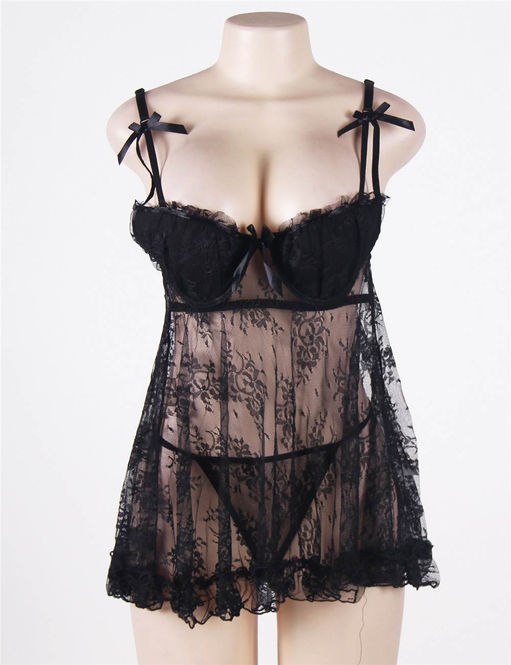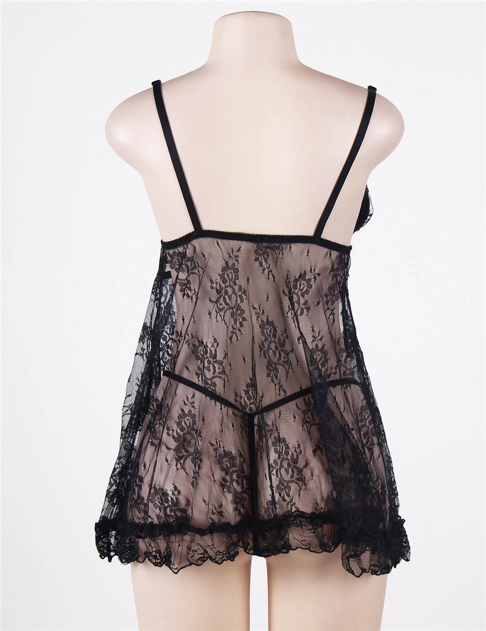Product Name Sexy Black Lace Mesh Babydoll Dress Nightwear