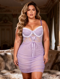 Home > Wholesale Plus Size Lingerie > Purple Lace Mesh Sexy Push Up Suspenders Nightdress